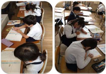 教材「およげないりすさん」の学習をしました。物語を読んで、自分たちだけで遊んでも本当に楽しくないことや、みんなと仲よく遊んだほうが楽しいことに気づき、友だちと仲よくし助け合おうとする心情を育てる学習です。