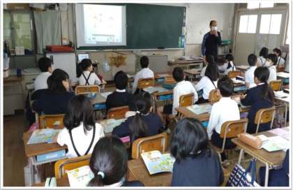 外国語活動の学習をしました。写真は、音声動画を活用して、ネイティブな英語の音声に慣れ親しんでいる様子です。3・4年生は、外国語活動での目標は、「外国語によるコミュニケーションにおける見方・考え方を働かせ,外国語による聞くこと、話すことの言語活動を通して、コミュニケーションを図る素地となる資質・能力を目指す。」です。