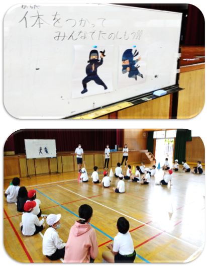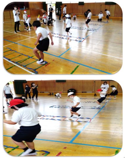 なかよしタイムで、全員で運動に取り組みました。「からだをつかってみんなでたのしもう!」ということで、友だち同士楽しく運動する時のマナーや声かけの仕方なども学びました。