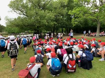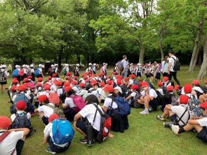 3・4年生が無事に帰校しました。写真は、長居公園を出発する時の子どもたちの様子です。