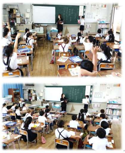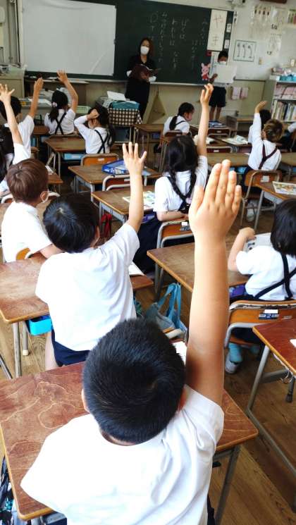 「みんなにはなそう」の学習をしました。身の回りで見つけたものの中から紹介するものを決め,相手に聞こえるように話す学習です。友だちのクイズ形式の発表を聞いてたくさんの子どもたちが答えています。