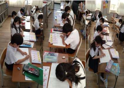漢字の学習をしました。新出漢字の「色」と「牛」という漢字を習いました。書き順や形に気をつけながらドリルで練習しています。