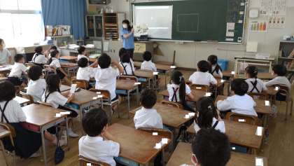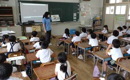 本日、1年生は心臓検診がありました。写真は、事前に検診のやり方の説明を聞いている子どもたちの様子です。とても真剣にお話を聞いています。