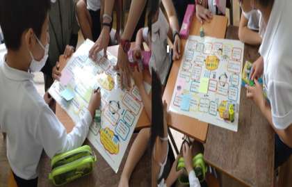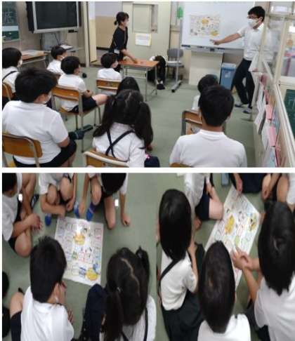 なかよしタイムがありました。2つの教室に分かれて、はじめは「ぐりとぐらのえんそく」の読み聞かせがありました。その後、グループですごろくを楽しむためのマナーをみんなで話し合いました。すごろくのマスを自分たちで作ったり、マナーをしっかりと守ったりしてすごろくを楽しみました。