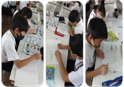 「メダカのたんじょう」の学習をしました。この時間は、メダカの発生や成長について話し合っています。ノートも丁寧に書いています。