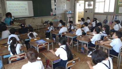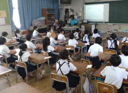 朝の英語モジュールでは、各学年の段階に合わせて英語に慣れ親しめるように活動を行っています。写真は、1年生の朝の英語モジュールの様子です。アルファベットの歌を聴いています。