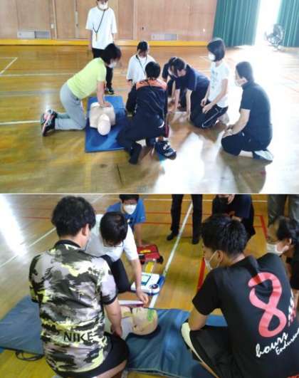 放課後に教職員対象に、救急救命研修が行なわれました。淀川消防署の隊員の方に来ていただき心肺蘇生やAEDの実技講習をしました。6月の下旬から、プール水泳が始まります。安全に注意しながら取り組んでいきたいと思います。