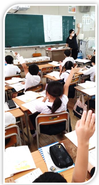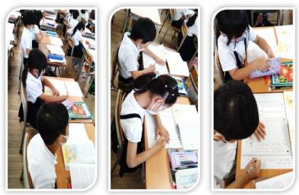 物語文「名前を見てちょうだい」の学習をしました。場面ごとに登場人物の様子を読み取っています。ワークシートに読み取ったことを書いています。発表も積極的です。