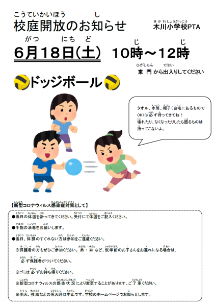 PTAより校庭開放についてのお知らせです。