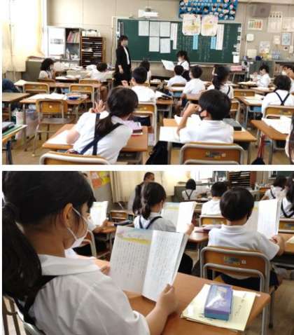 本日、2年生の研究授業がありました。物語文「名前を見てちょうだい」の学習でした。音読をして、登場人物の心情をワークシートに書きました。その後、グループで、それぞれの考えを交流しました。発表もしっかりとできました。
