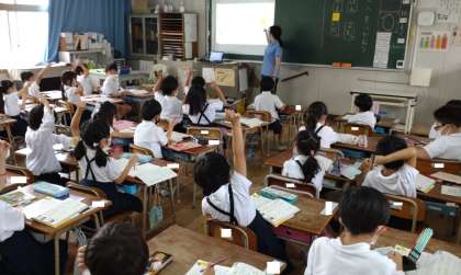 「をへをつかおう」の学習をしました。助詞「を」「へ」の使い方を理解して、一文の意味がはっきりとわかるようになる文を書く学習です。この時間は、「〜を〜する」という「を」使った文づくりに取り組んでいます。