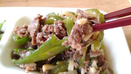 中国語で「青椒」(チンジャオ)はピーマン、「牛肉」(ニューロウ)は、牛肉、「絲」(スー)は細切りという意味です。