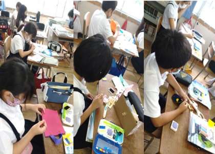 手ぬいの学習に取り組みました。玉結び・玉どめ・なみぬい・返しぬい・ボタン付けの後、小物づくりをしています。