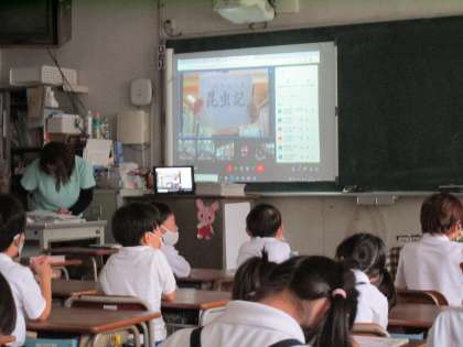 今日は月曜日なので全校朝会がありました。校長先生からはファーブルについての伝記や昆虫記を紹介し、「探究心」についての話がありました。また保健委員会からは7月の保健目標「夏を元気にすごそう」についての発表がありました。