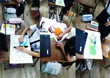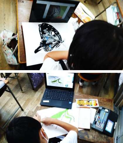 3年生の図画工作で、『昆虫』の作品づくりに取り組んでいます。色彩も工夫して写実的に描画しています。