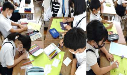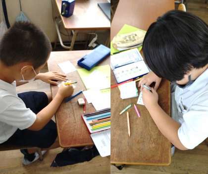 『いいところみつけカード』を書きました。友だちのいいところを見つけてカードに書いています。