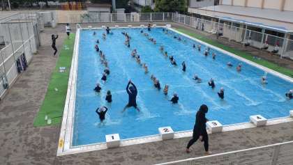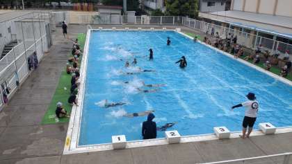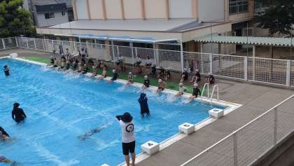 2年生のプールでの学習の様子です。バタ足の練習に取り組んでいます。