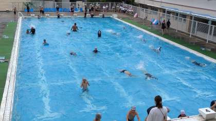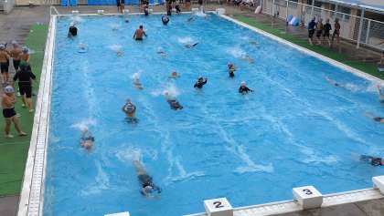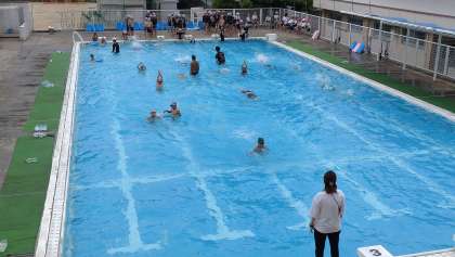 4年生のプールでの学習の様子です。25メートルを泳げるように練習しています。