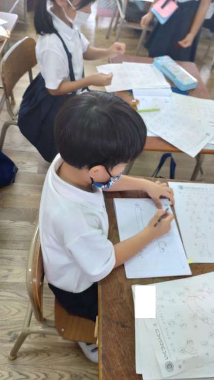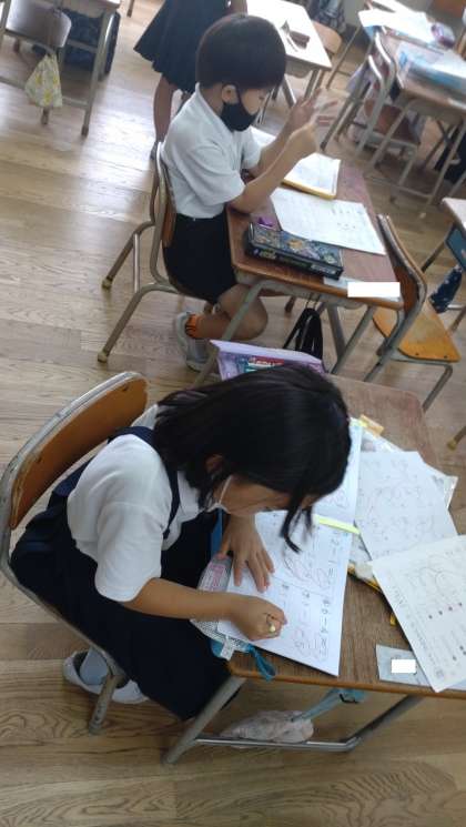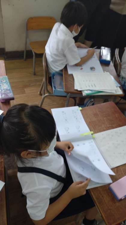 1学期の学習の振り返りやまとめをしています。計算問題などに取り組んでいます。