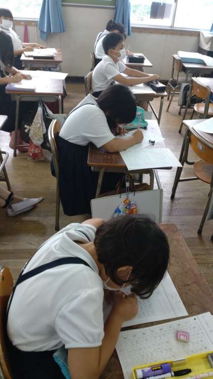3年生も1学期の学習のふりかえりやまとめに取り組んでいます。写真は、ローマ字の学習をしている様子です。