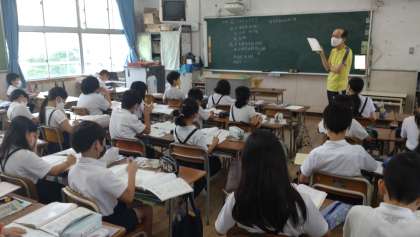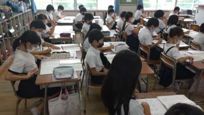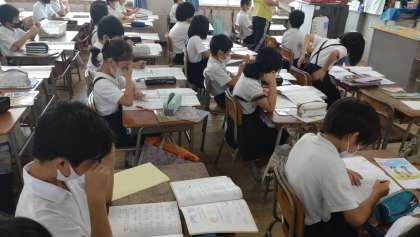 4年生が1学期の学習の復習に取り組んでいます。写真は、算数の課題の答えを確かめていいる様子です。