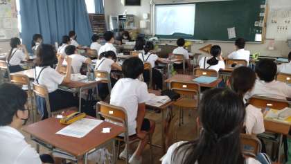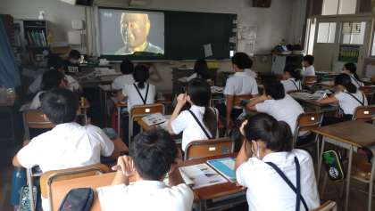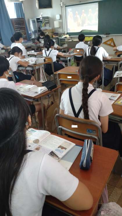 奈良時代の学習をしました。当時、大陸の文化に学ぶための遣唐使や鑑真などを動画や資料を活用して調べています。