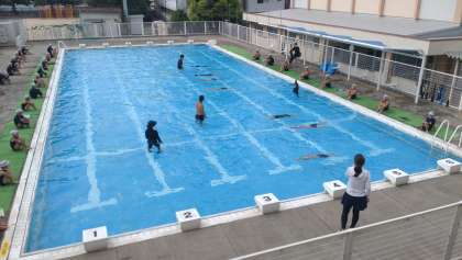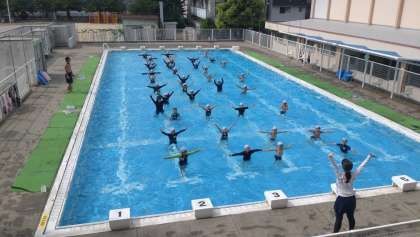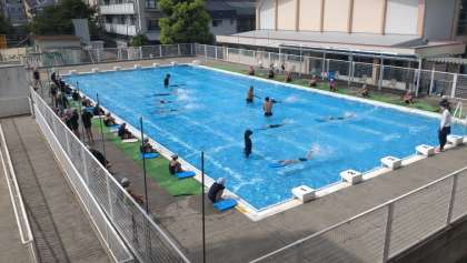 今日から夏休みがはじまりました。28日(木)まで、新型コロナ感染症対策のために分散した学年ごとのプール水泳・図書館開放があります。写真は、3年生のプール水泳の様子です。熱中症予防のために水分補給をしながら、『水慣れ』『けのび』『バタ足』などの練習をしています。