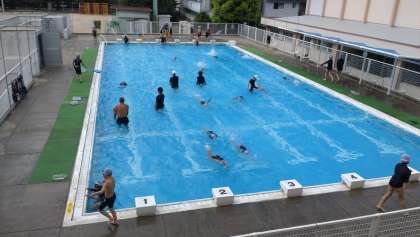 本日も新型コロナ感染症対策のために分散した学年ごとのプール水泳・図書館開放があります。写真は、4年生のプール水泳の様子です。熱中症予防のために水分補給をしながら、『バタ足』『クロール』や各自の目標に向けて、コースに分かれて練習をしています。子どもたちは、とても熱心に取り組んでいます。