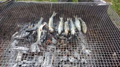 捕まえた時の感触や焼きたての魚の味は、お家で聞いてみてください。