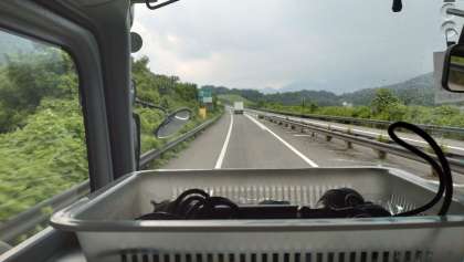 バスを降りようとした途端、土砂降りの雨です・・・
