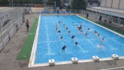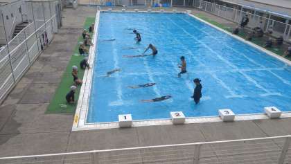 3年1組のプール水泳の様子です。2学期はじめてのプール水泳で、子どもたちはとても楽しそうです。水慣れから、けのびや伏し浮きなどの基本の泳ぎを練習しています。