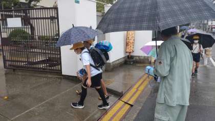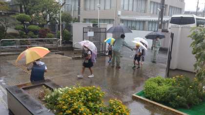 9月1日(木)、本日は、児童集会、発育測定2年生、修学旅行前検診6年生があります。天候不順ですが、見守り隊の方々、教職員の見守りの下、子どもたちは元気に登校しています。
