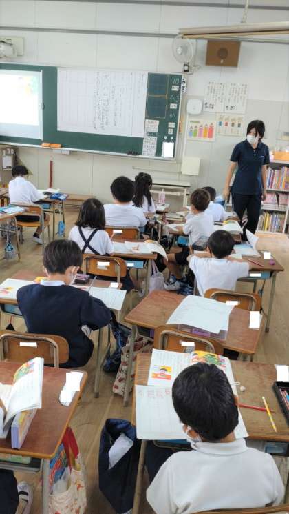 物語文「サラダでげんき」の学習をしました。場面の様子や登場人物の行動など、物語の内容を読み取り、ワークシートにまとめています。