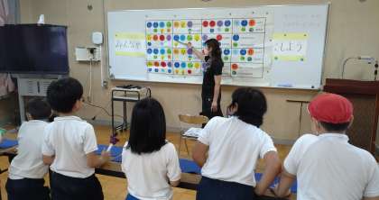 低中学年の子どもたちは、ハンドベルにチャレンジしています。先生の指揮に合わせて、ハンドベルを鳴らしています。
