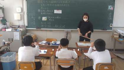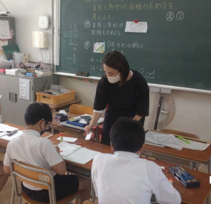 面積の学習をしました。直角三角形の面積の求め方を考えています。平面図形の見方・考え方を深める学習です。