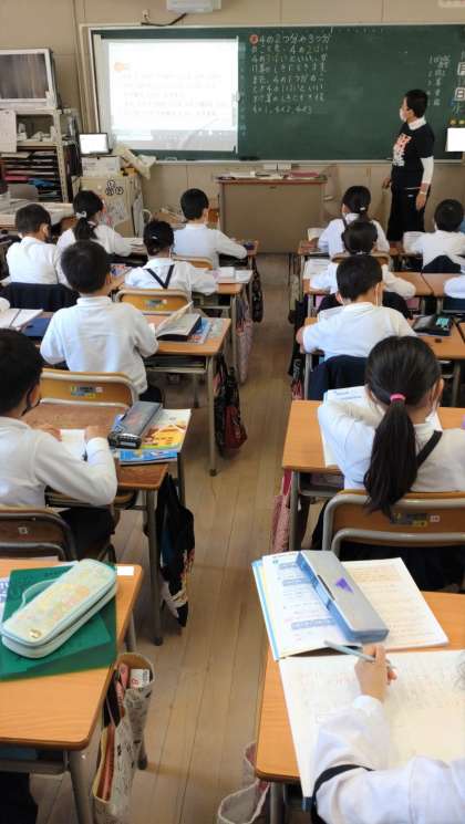 かけ算の学習をしました。この学習では、かけ算の意味を知り、1つ分の大きさのいくつ分を求めるときにかけ算を用いればよいことを学んでいます。