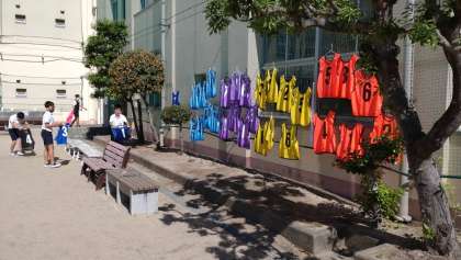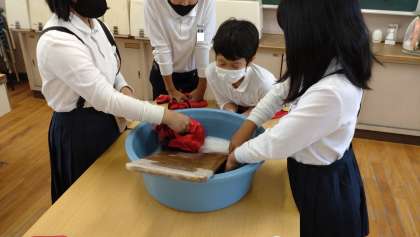 「洗たくをしてみよう」の学習をしました。運動会で使用した「ビブス(ゼッケン)」を工夫しながら洗たくしています。