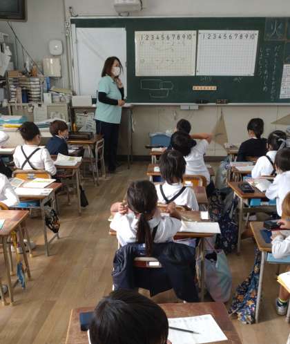 「3 つの かずの けいさん」の学習をしました。この時間は、文章問題から、3つの数の計算(−,+)の場面を理解し、計算ができるように学んでいます。