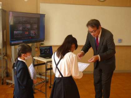 本日、全校朝会がありました。今日は図画工作科での表彰の紹介がありました。2名の児童が大阪市小学校児童絵画・版画展で表彰されました。また、環境美化委員会の児童2名からは以前募集した鳥(インコ)の名前が「ピーすけ」に決まったこと、代表委員の児童3名からは今週金曜日に行く全校遠足のめあてが「みんなで協力し、えがおでわすれられない全校遠足にしよう!」に決まったことについてのお知らせがありました。
