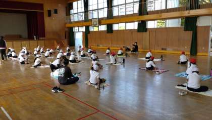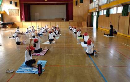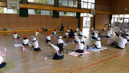 本日、淀川区役所からヨガの先生に来ていただき、1年生の出前授業がありました。子どもたちは、先生の話を真剣に聞き、いろいろなヨガのポーズをとっていました。