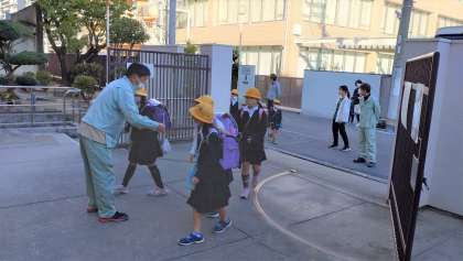 10月26日(水)、本日は、朝の英語モジュール、C-NETの授業があります。今朝も、見守り隊の方々、教職員の見守りの下、子どもたちは、しっかりと挨拶・会釈をして登校しています。