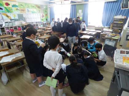 明日の全校遠足にむけ、本日1限目にたてわり班活動がありました。明日の午前中はたてわり班でオリエンテーリングをします。グループごとに集まり、記念写真の撮影ポーズを決めたり、並び方を確認したりしていました。