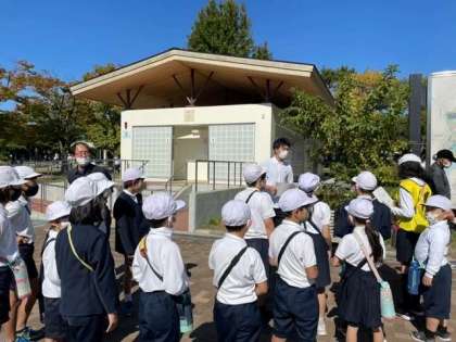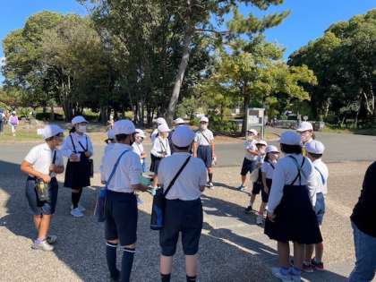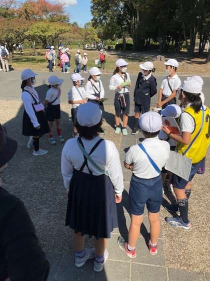 本日、予定通り全校遠足で服部緑地へ出発しました。