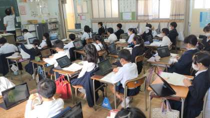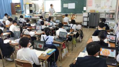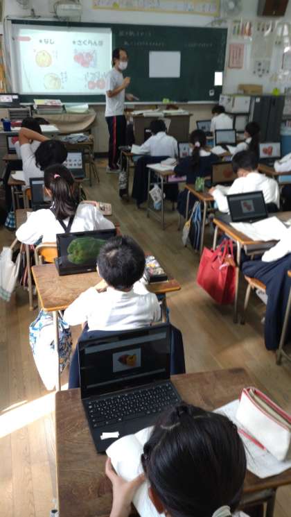 絵手紙の作品づくりに取り組みました。一人一台端末PCを活用して、題材を見つけています。