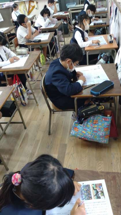 学習のまとめのテストに取り組みました。子どもたちは、とても集中しています。