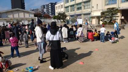 11月19日(土)に、PTA主催の校庭開放がありました。ビンゴゲームやポップコーンの配布など、今回は、趣向を凝らした校庭開放でした。子どもたちは、大喜びでした。写真は、ビンゴや景品交換をしている様子です。先生方も参加しています。