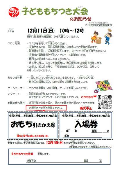 11月22日に「子どももちつき大会のお知らせ」を配付しました。