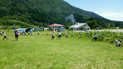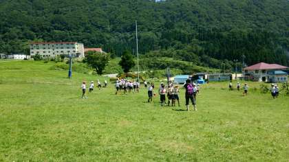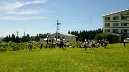 宿舎の前の広場で、最後の草原遊びを楽しみました。