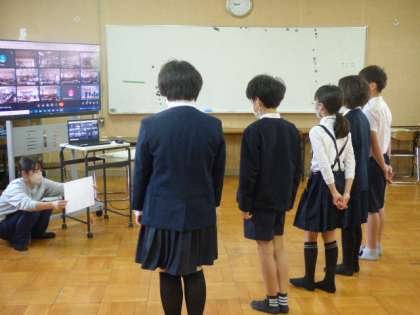 本日、月曜日は全校朝会がありました。校長先生からは地域の見守り隊の活動についての紹介や、見守り隊の方々にすすんであいさつしましょうという話がありました。また、代表委員の児童からは身だしなみに関する間違い探しクイズと赤い羽根募金についてのお知らせがありました。