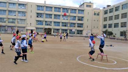 いよいよ試合がはじまりました。子どもたちはチームで協力してシュートを狙っています。